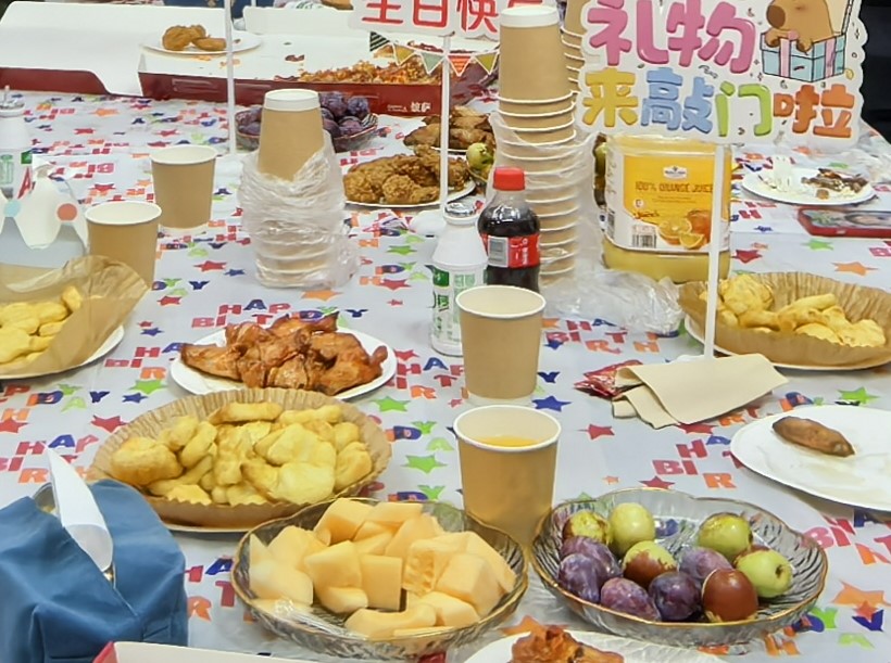 各式各樣的美食琳瑯滿目,誘人的香氣在房間內(nèi)彌漫開來,正如我們心中對(duì)每一位壽星那份暖暖的、持續(xù)升溫的祝福。